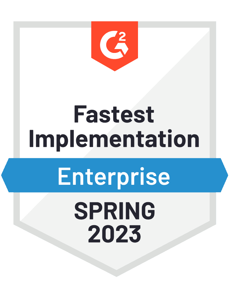 G2, the world’s largest consumer-rated review site for technology, named Prodly the Fastest Implementation Product in its Spring 2023 Reports. In fact, our go-live time is unparalleled—you can be operational in minutes. And with a short go-live time, your team can concentrate on other priorities.