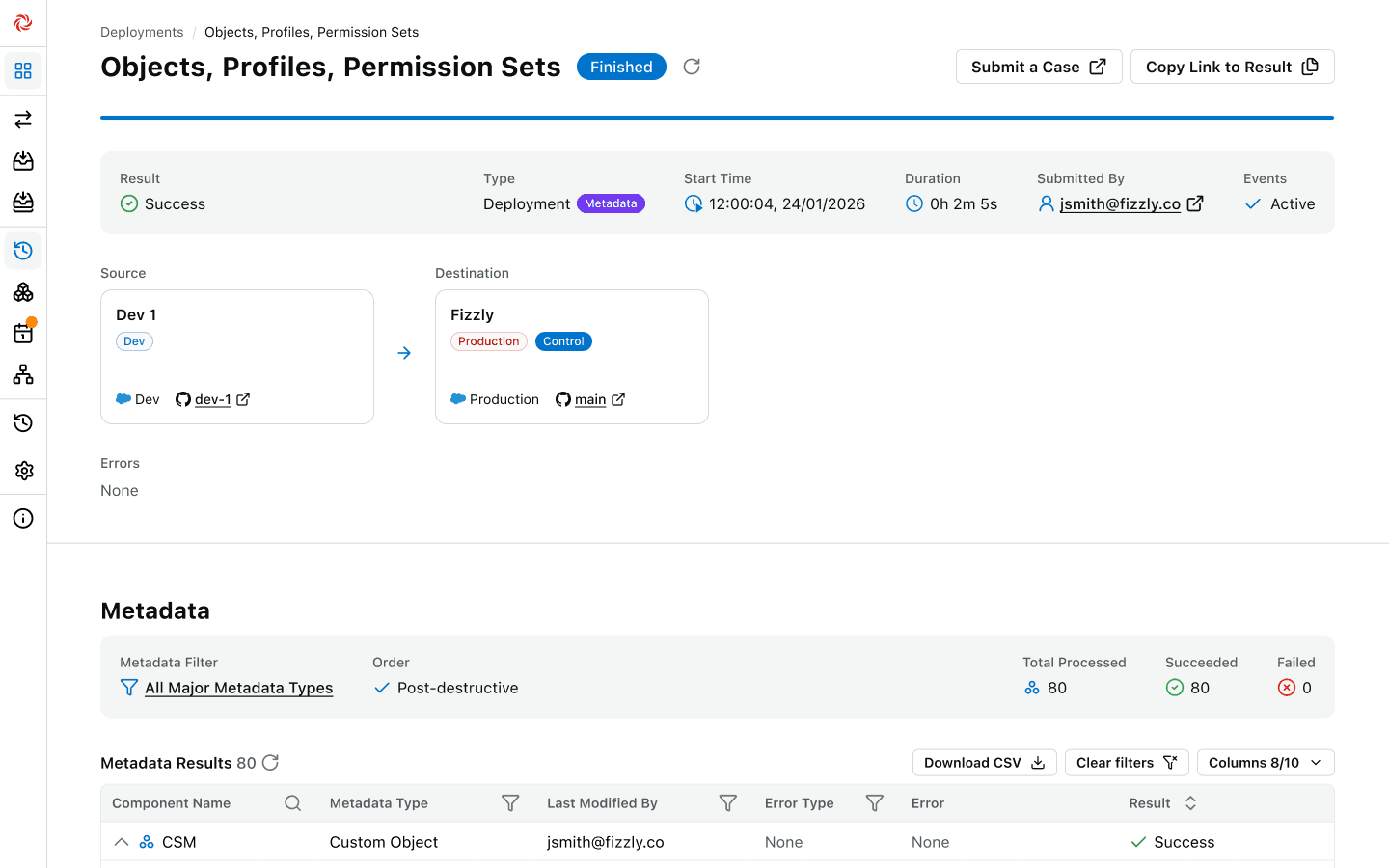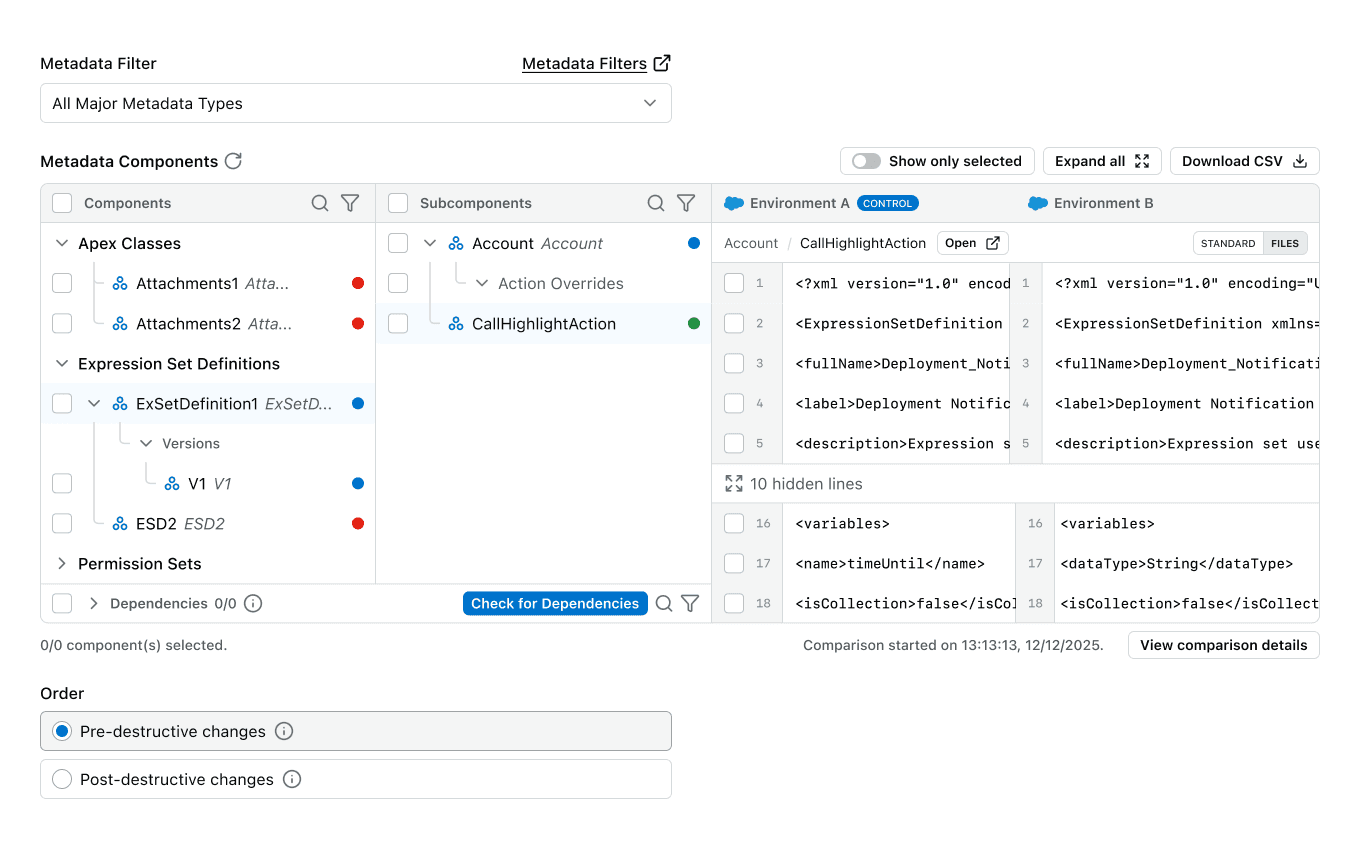 Run side-by-side metadata comparisons with XML-level diffs to see exactly what's different.