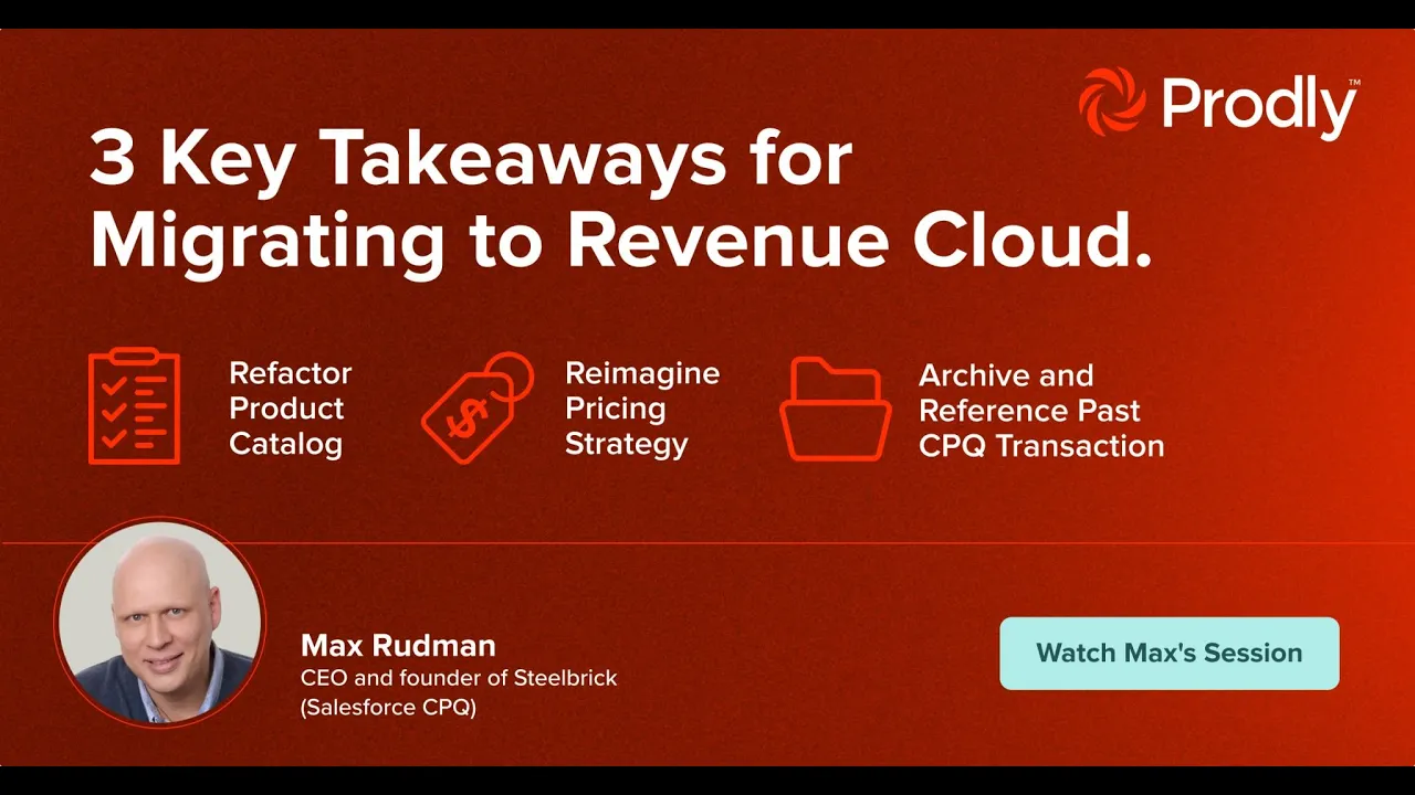 Max Rudman, CEO of Prodly and former founder of Steelbrick (the original Salesforce CPQ), presents a comprehensive guide on migrating from Salesforce CPQ to Revenue Cloud.