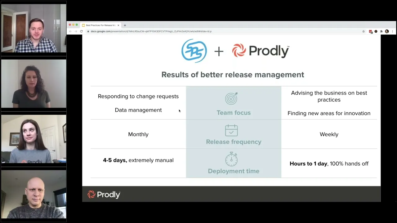 Are you tired of spending long hours doing your best to manage deployment sequences? Watch this video to hear how the team at SPS Commerce achieved hassle-free deployments and a better quality of life with the Salesforce automation provided by Prodly DevOps!